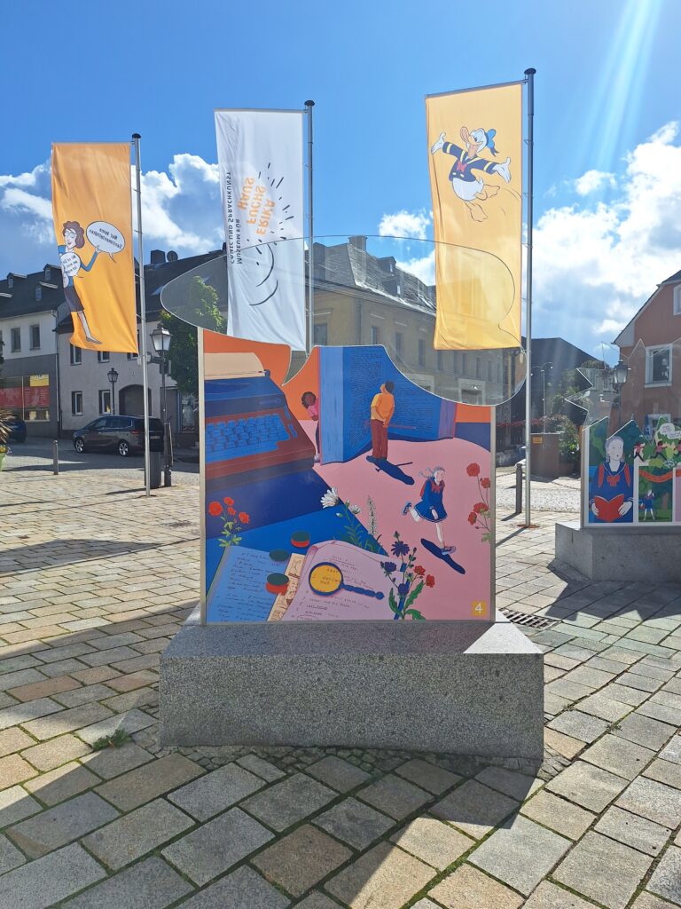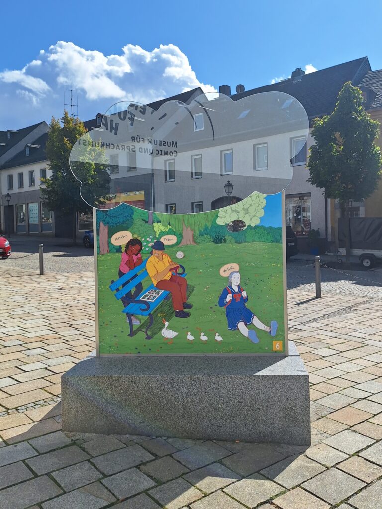 Im zehnten Jubiläumsjahr des Museums wurde der Wettbewerb zur Neugestaltung der Vorplatzskulpturen erneut ausgeschrieben. Es gingen insgesamt 22 Einreichungen aus ganz Deutschland ein. Im Mai 2025 entschied sich die Jury – bestehend aus Dr. Joanna Straczowski (Museumsleitung), Bertram Popp (ehem. Leiter des Bauernhofmuseums Kleinlosnitz), Bärbel Sandler (Prokuristin Sandler AG), Gerhard Severin (Sammler) und Sarah Kühnel (Leiterin der Galerie e.o.plauen) – Luise Mirdita als die diesjährige Gewinnerin des Wettbewerbs zu ernennen. Die farbenfrohen Entwürfe der Künstlerin nehmen klar Bezug auf Erika Fuchs‘ Sprachkunst sowie auf die Stadt Schwarzenbach und das Museum. Sie bestechen durch Detailreichtum und eine fantasievolle Comic-Erzählung.